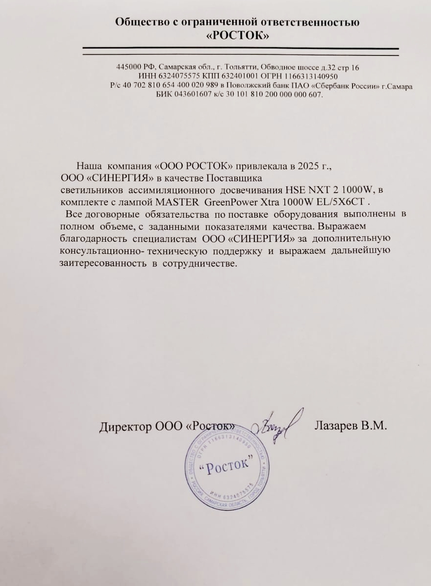 Синергия - поставщик оборудования для устройства ассимиляционного досвечивания растений в теплицах. Мы производим снабжение предприятий тепличного комплекса лучшими светильниками досвечивания и комплектующими.